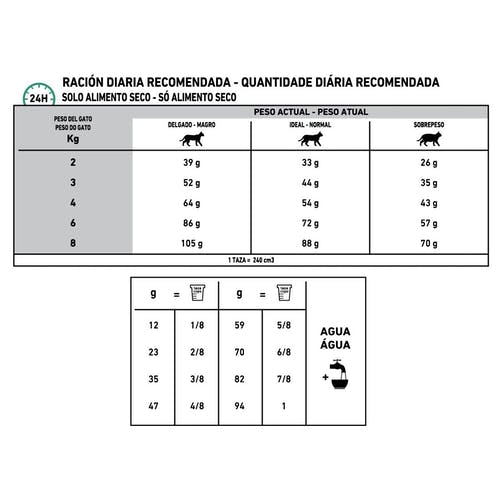 Alimento para gatos adultos, formulado para ayudar en la regulación del aporte de glucosa (Diabetes Mellitus). Este alimento se caracteriza por su bajo contenido de hidratos de carbono con liberación rápida de glucosa.