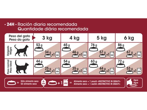 Alimento para gatos adultos con peso ideal, actividad física moderada y que poseen acceso al exterior. De 1 a 7 años de edad.
