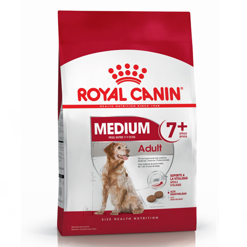 Alimento para perros maduros de talla mediana (de 11 a 25 kg). Desde los 7 a los 10 años de edad.